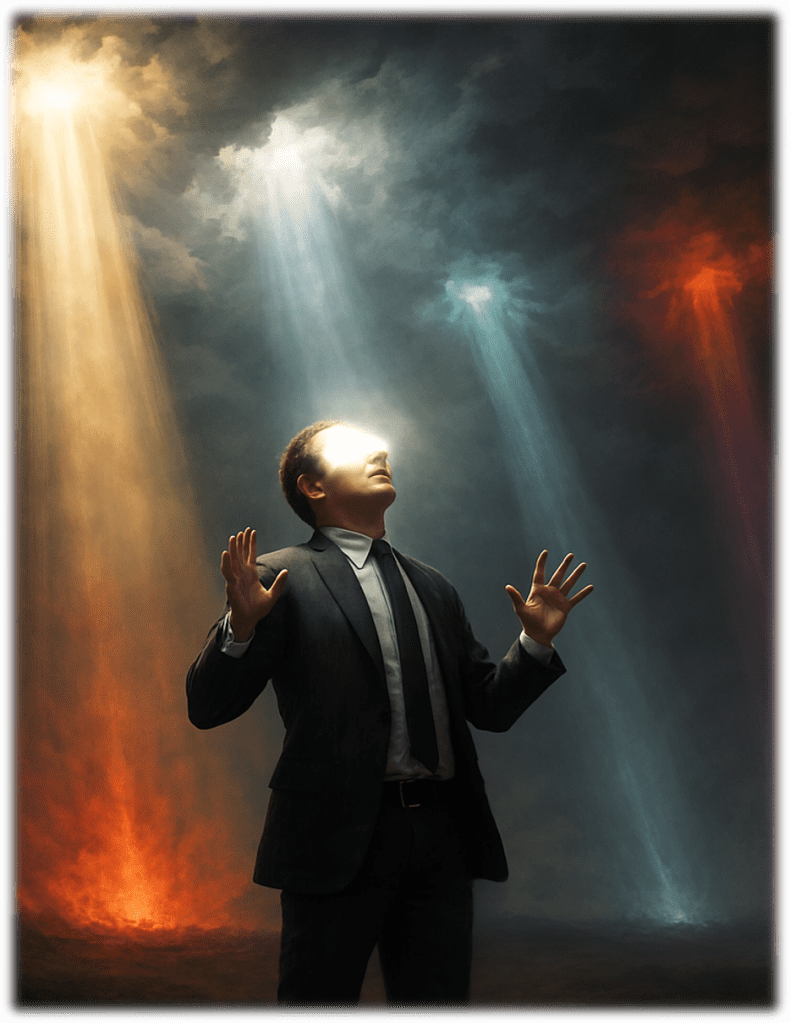 Beneath the Fourth Light is a darkly comic, speculative drama about Richard Ainsworth, a powerful Perth executive who dies suddenly—and refuses to accept it. Awaking in a sterile, bureaucratic afterlife, he is thrust into an experimental trial that will take him through realms beyond life, including Heaven and Hell. Each realm challenges his assumptions, tests his moral compass, and forces him to confront the truths he has long avoided.